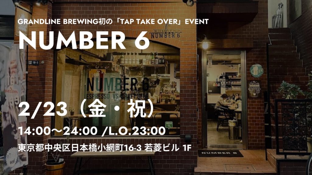 いよいよ3日後に迫りました!GRANDLINE BREWING「TAP TAKE OVER」@NUMBER 6。情報をアップデートさせて頂きます!GLBが自信をもって送り出す厳選6種+【?】のクラフトビールがつながりますので、色々と飲んで頂ける貴重な機会となります!今週そして当日は雨模様ではありますが、楽しく乾杯して、鬱憤を吹き飛ばしましょう。それでは、皆さんのご来場を心よりお待ちしております!