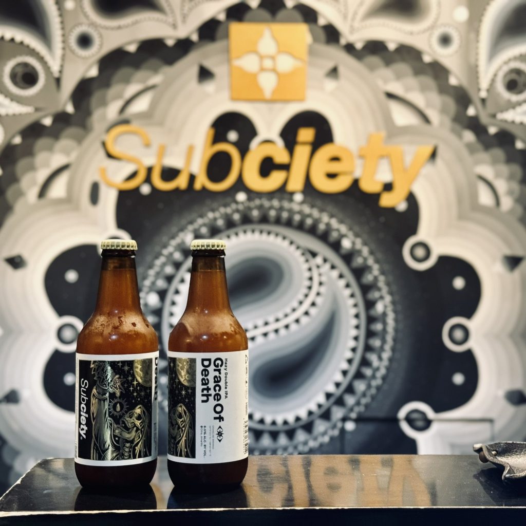 ファッションブランド【Subciety】とのコラボレーションビール「Grace Of Death」がご好評を頂き、増産することが決定。現在庫分は渋谷のHEAD SHOPで絶賛販売中です!今回のビールはブランドイメージから着想したゴリゴリのHazy DIPAに仕上げています。ラベルデザインと同じイラストのバックプリントTeeも超Coolなので是非GETしてください!Give it a shot, For anything‼︎ Enjoy Beer.