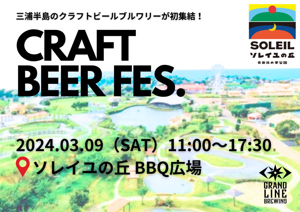 Hello,Yokosuka‼ 三浦半島のクラフトビールブルワリーが初集結する「CRAFT BEER FES.」が2024年3月9日(土)に横須賀ソレイユの丘にて開催されます。ここでしか味わえないビールを大空の下でビアフライトしませんか?ご来場の際はぜひGLBブースにお立ち寄りください。楽しく乾杯しましょう!