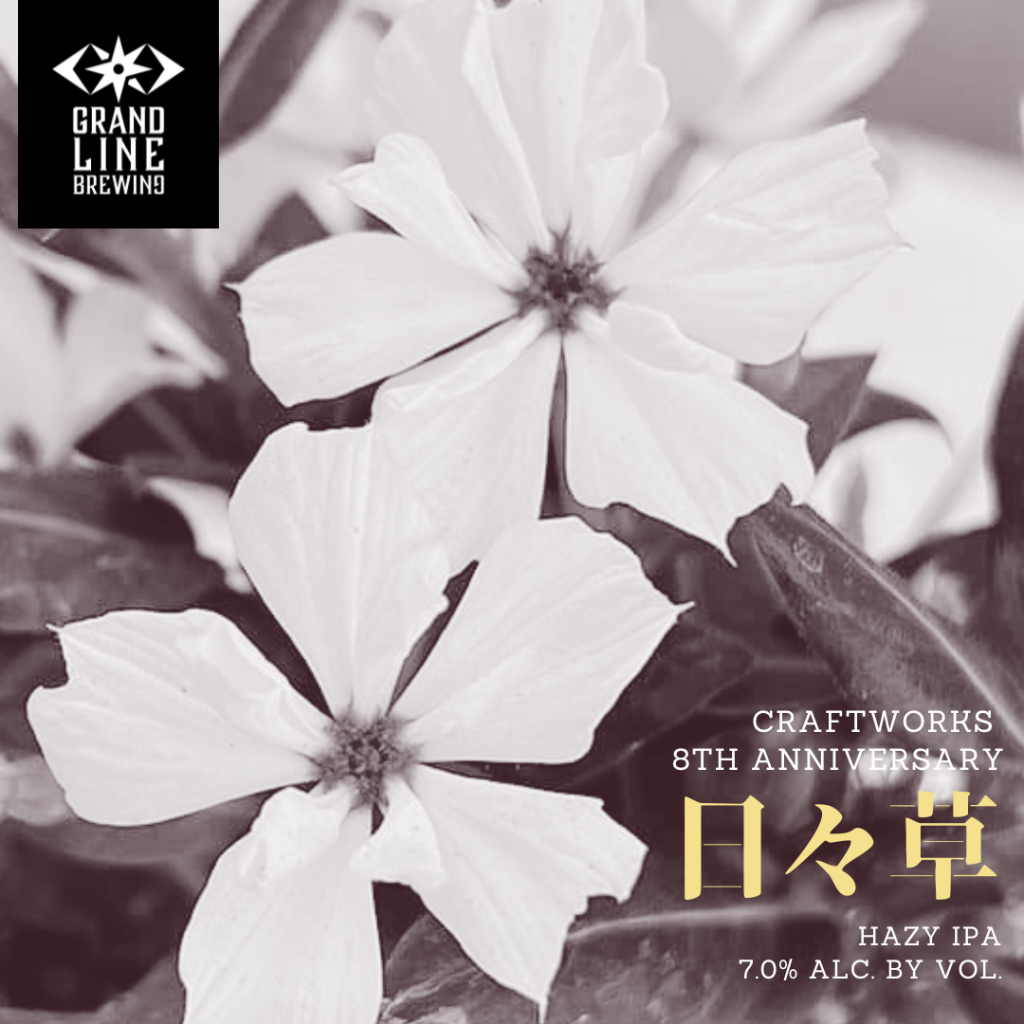 Hello,Friends‼ 今週末はCRAFTWORKSの8周年パーティーが開催されます。今回は大切な”Anniversary Beer”を私たちが担当させて頂きました!タイトルは「日々草 Nichi Nichi Sou」。優しさやかけがえのない友情などから着想し醸造したHazy IPAが完成しました。多くの人たちに飲んで頂きたい一杯です。